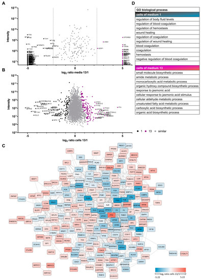 3.2. Proteomic Analyses Indicate Differences for Growth Media and Respective Cells