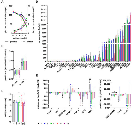 2.1.3. Determination of Glucose Consumption, Lactate Generation and Yield