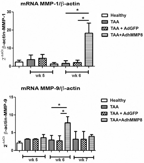 | TAA + AdhMMP8 | 214.0 ± 11.2 | 117.5 ± 46.8 | 320.5 ± 137.4 * | 133.5 ± 25.7 | 159.0 ± 26.6 | 89.0 ± 13.6 |