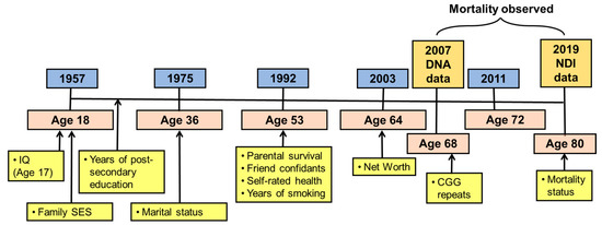 Figure 1 illustrates the timepoint when each variable was measured during the 60+ year course of the WLS as well as the average age of WLS participants at each point of measurement.