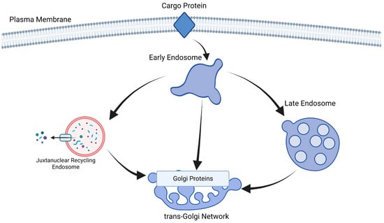 Protein cargoes ingested from the plasma membrane (PM) are transported back to the trans-Golgi network (TGN) via retrograde transport pathways that involve various endosomal compartments. Each protein cargo utilizes unique pathways within this endosomal system for retrograde transport. Retrograde transport equipment depends on which endosomal compartment it serves. Retrograde transport pathways involve specific protein cargoes utilizing specific endosomal compartments and using machinery that facilitates sorting, tethering, docking and fusion along their routes back to the TGN.