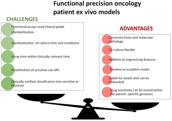 Current limitations and advantages of functional assays based on ex vivo three-dimensional tumour models.