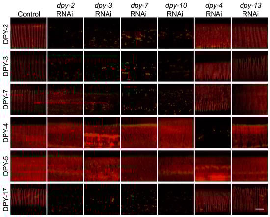 - McMahon, L.; Muriel, J.M.; Roberts, B.; Quinn, M.; Johnstone, I.L. Two sets of interacting collagens form functionally distinct substructures within a Caenorhabditis elegans extracellular matrix. Mol. Biol. Cell 2003, 14, 1366–1378. [Google Scholar] [CrossRef]