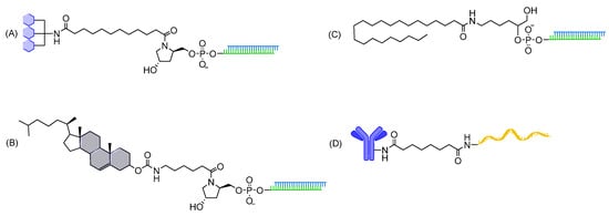 - Winkler, J. Oligonucleotide conjugates for therapeutic applications. Ther. Deliv. 2013, 4, 791–809. [Google Scholar] [CrossRef]