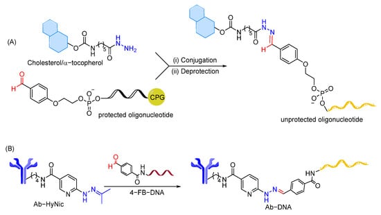 - Ollivier, N.; Olivier, C.; Gouyette, C.; Huynh-Dinh, T.; Gras-Masse, H.; Melnyk, O. Synthesis of oligonucleotide–peptide conjugates using hydrazone chemical ligation. Tetrahedron Lett. 2002, 43, 997–999. [Google Scholar] [CrossRef]