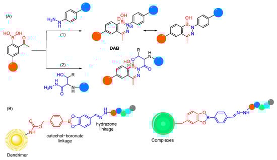 - Gu, H.; Chio, T.I.; Lei, Z.; Staples, R.J.; Hirschi, J.S.; Bane, S. Formation of hydrazones and stabilized boron-nitrogen heterocycles in aqueous solution from carbohydrazides and ortho-formylphenylboronic acids. Org. Biomol. Chem. 2017, 15, 7543–7548. [Google Scholar] [CrossRef] [PubMed]