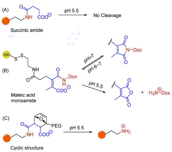 - Zhang, A.; Yao, L.; An, M. Reversing the undesirable pH-profile of doxorubicin via activation of a di-substituted maleamic acid prodrug at tumor acidity. Chem. Commun. 2017, 53, 12826–12829. [Google Scholar] [CrossRef]