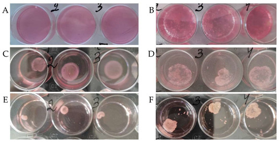 On day 2, at the beginning of cultivation, the collagen I hydrogel in bioengineered constructs contained dTM and dPDL and showed a more pronounced contraction than in the control (Figure 2A,B). However, at the end of the cultivation, on day 14, the collagen I hydrogel contraction was more pronounced in the control (Figure 2E,F).