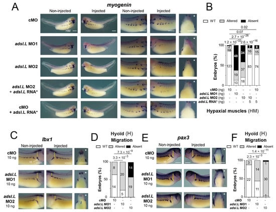 3.5. The adsl.L Gene Was Required for Hypaxial Muscle Formation and Migration