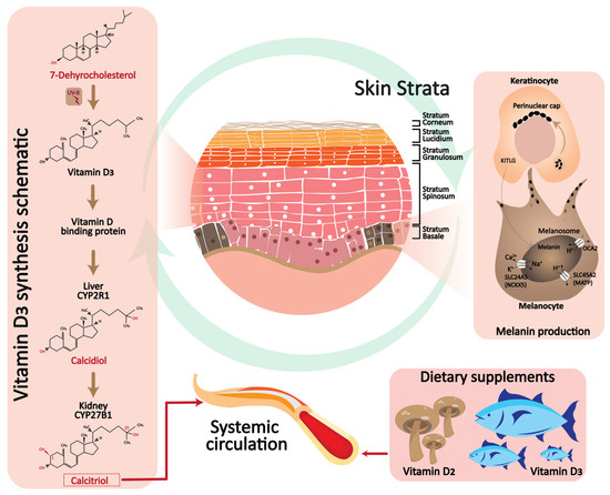 3. Mostafa, W.Z.; Hegazy, R.A. Vitamin D and the skin: Focus on a complex relationship: A review. J. Adv. Res. 2015, 6, 793–804. [Google Scholar] [CrossRef] [PubMed]