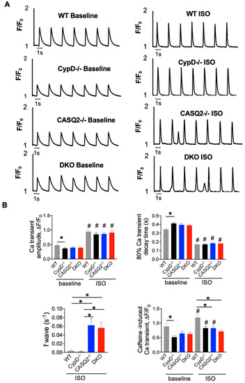 3.2. DKO Mice Displayed Abnormal Myocyte Ca2+ Handling