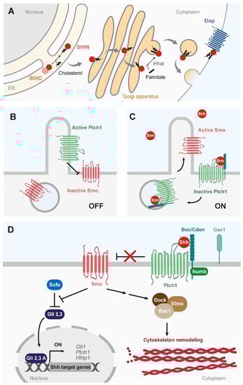 - Ferent, J.; Traiffort, E. Hedgehog: Multiple Paths for Multiple Roles in Shaping the Brain and Spinal Cord. Neuroscientist 2015, 21, 356–371. [Google Scholar] [CrossRef]