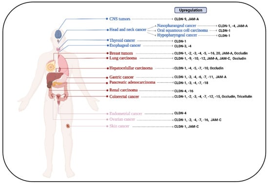 - Latorre, I.J.; Frese, K.K.; Javier, R.T. Tight Junction Proteins and Cancer. Landes Bioscience, 2000–2013; Bookshelf ID: NBK6540. Madame Curie Bioscience Database. 2013. Available online: https://www.ncbi.nlm.nih.gov/books/NBK6540/ (accessed on 12 June 2022).