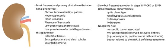 The main features of the kidney involvement in HNF1B deficiency are summarized in Figure 1.