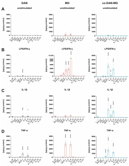 3.2. MG and co-DAN-MG Cultures but Not DAN Exhibit Cytokine Release Following LPS/IFN-γ Stimulation