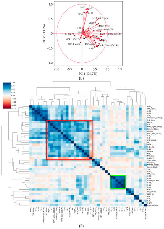 The supernatant was collected and snap frozen. Cytokine analysis was performed on the thawed supernatant with “Cytokine/Chemokine/Growth Factor 45-Plex Human ProcartaPlex™ Panel 1” kit (Thermo Fisher Scientific, Waltham, MA, USA) used according to the protocol. Data were obtained with a Bio-Plex 200 Systems (BioRad, Hercules, CA, USA).