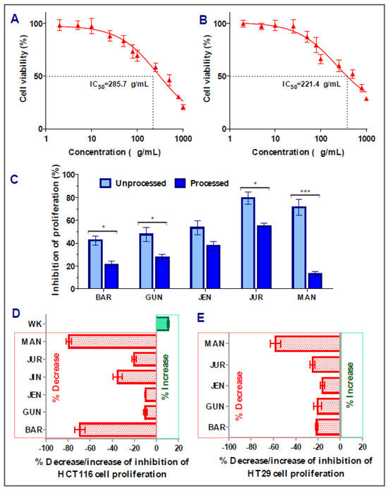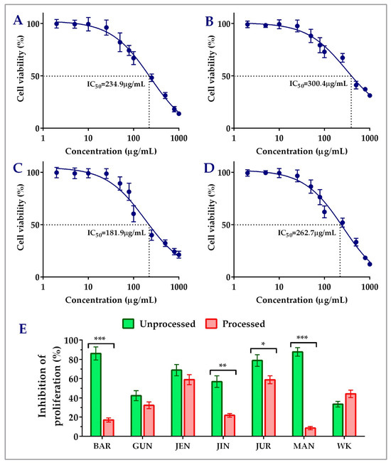 3.2. Impact of Processing of Lupin Flours on Inhibition of Colon Cancer Cells’ Proliferation