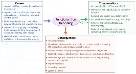 - Muñoz, P.; Humeres, A. Iron deficiency on neuronal function. Biometals 2012, 25, 825–835. [Google Scholar] [CrossRef]