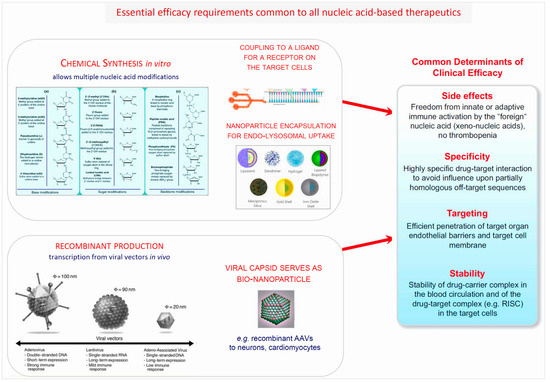 Nucleic acid-based and nucleic acid-targeting therapeutics are currently developed at large scale for the prevention and management of multiple diseases for several reasons: