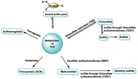 The expression of H2S-catabolic catabolic enzymes varies in numerous physiological systems, including the endocrine, neuronal, cardiovascular, respiratory, immunological, reproductive, renal, hepatic and gastrointestinal systems. Various enzymes play a role in modulating the activities of different systems by regulating the generation of H2S. Pathological conditions such as atherosclerosis, hypertension, heart failure, cirrhosis, inflammation, asthma, sepsis, diabetes, erectile dysfunction and neurodegenerative diseases arise because of alterations in H2S metabolism [5,6,7].