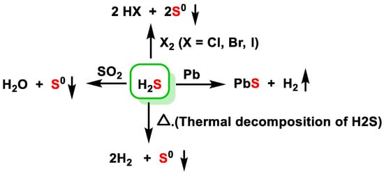 H2S has strong nucleophilic properties that allow it to react with electrophilic species, whereas sulfur is a good reductant and will react with oxidants. Sulfur has a variable oxidation state, which can range from −2 to +6, and, in its lowest oxidation state, −2, is a good reductant. This means that it can give up electrons to other atoms, reducing its oxidation state. The sulfur atom from H2S is also a good reductant because sulfur has an oxidation state of −2. When H2S reacts with an oxidant, the sulfur gives up electrons to the oxidant, reducing its oxidation state. It is, therefore, a good reductant acting as a general sulfur atom or as a sulfur atom from H2S.