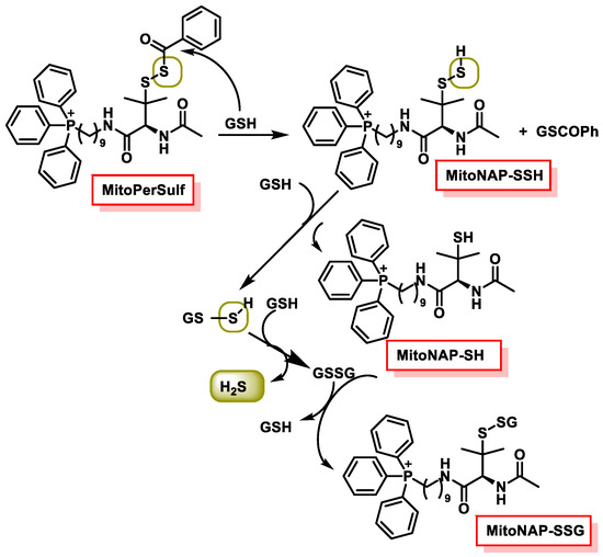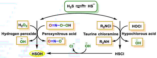 - Filipovic, M.R. Persulfidation (S-sulfhydration) and H2S. Handb. Exp. Pharmacol. 2015, 230, 29–59. [Google Scholar] [CrossRef]