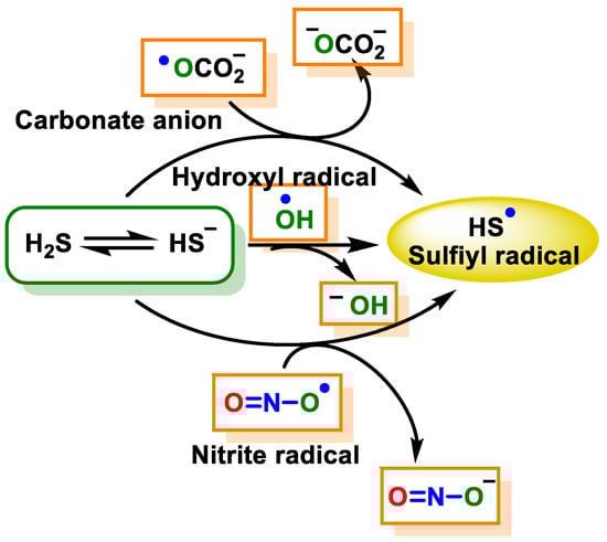 - Carballal, S.; Trujillo, M.; Cuevasanta, E.; Bartesaghi, S.; Möller, M.N.; Folkes, L.K.; García-Bereguiaín, M.A.; Gutiérrez-Merino, C.; Wardman, P.; Denicola, A.; et al. Reactivity of hydrogen sulfide with peroxynitrite and other oxidants of biological interest. Free Radic. Biol. Med. 2011, 50, 196–205. [Google Scholar] [CrossRef] [PubMed]