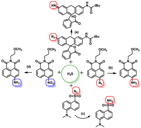 - Lippert, A.R.; New, E.J.; Chang, C.J. Reaction-based fluorescent probes for selective imaging of hydrogen sulfide in living cells. J. Am. Chem. Soc. 2011, 133, 10078–10080. [Google Scholar] [CrossRef] [PubMed]