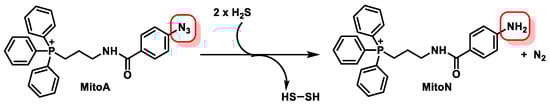 - Arndt, S.; Baeza-Garza, C.D.; Logan, A.; Rosa, T.; Wedmann, R.; Prime, T.A.; Martin, J.L.; Saeb-Parsy, K.; Krieg, T.; Filipovic, M.R.; et al. Assessment of H2S in vivo using the newly developed mitochondria-targeted mass spectrometry probe MitoA. J. Biol. Chem. 2017, 292, 7761–7773. [Google Scholar] [CrossRef] [PubMed]