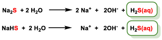 H2S is a gas at room temperature, heavier than air, colorless with a characteristic rotten egg odor and toxic [11,12,13]. Until the mid-1990s, it was considered mainly toxic to humans and harmful to the environment. The substance is moderately soluble in water, with a solubility of 2.77 volumes in 1 volume of water at a temperature of 20 °C. Moreover, it can be effectively eliminated from an aqueous solution by complete dissolution during boiling.