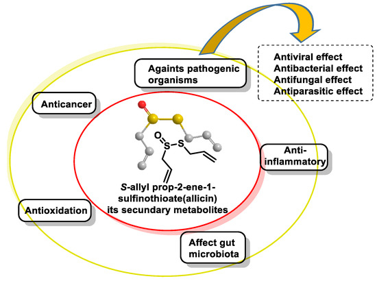- Zhou, Y.; Li, X.; Luo, W.; Zhu, J.; Zhao, J.; Wang, M.; Sang, L.; Chang, B.; Wang, B. Allicin in Digestive System Cancer: From Biological Effects to Clinical Treatment. Front. Pharmacol. 2022, 13, 903259. [Google Scholar] [CrossRef] [PubMed]