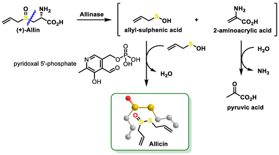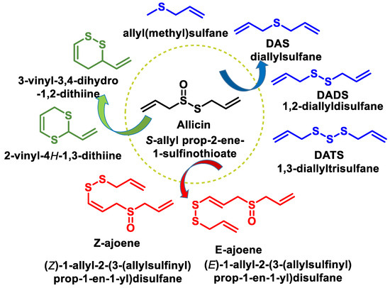 - Sarvizadeh, M.; Hasanpour, O.; Naderi Ghale-Noie, Z.; Mollazadeh, S.; Rezaei, M.; Pourghadamyari, H.; Masoud Khooy, M.; Aschner, M.; Khan, H.; Rezaei, N.; et al. Allicin and Digestive System Cancers: From Chemical Structure to Its Therapeutic Opportunities. Front. Oncol. 2021, 11, 650256. [Google Scholar] [CrossRef] [PubMed]