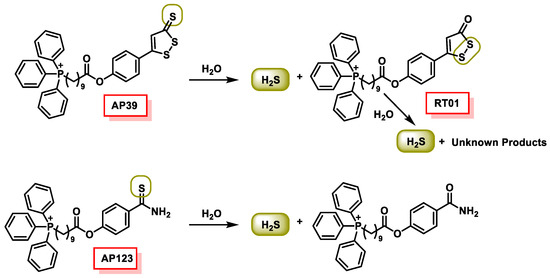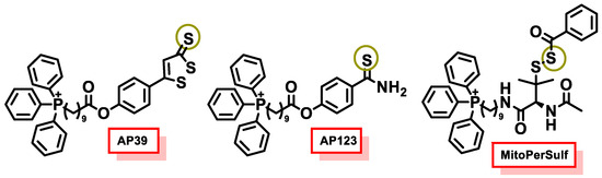 - Szczesny, B.; Módis, K.; Yanagi, K.; Coletta, C.; Le Trionnaire, S.; Perry, A.; Wood, M.E.; Whiteman, M.; Szabo, C. AP39, a novel mitochondria-targeted hydrogen sulfide donor, stimulates cellular bioenergetics, exerts cytoprotective effects and protects against the loss of mitochondrial DNA integrity in oxidatively stressed endothelial cells in vitro. Nitric Oxide 2014, 41, 120–130. [Google Scholar] [CrossRef] [PubMed]