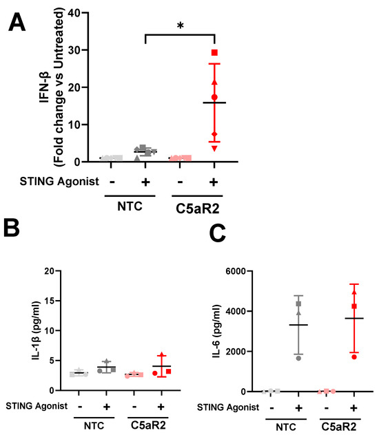 3.5. Confirmation of an Enhanced IFN-β Response to STING Agonism in Primary Human Macrophages with Reduced C5aR2