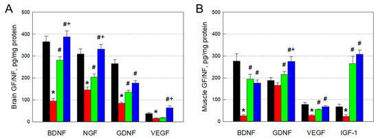 3.5. Restoration of Brain and Muscular GFs and NFs