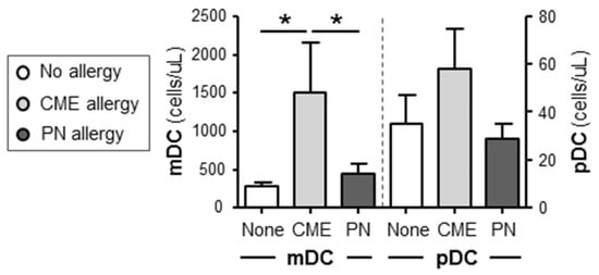 - Frischmeyer-Guerrerio, P.A.; Guerrerio, A.L.; Chichester, K.L.; Bieneman, A.P.; Hamilton, R.A.; Wood, R.A.; Schroeder, J.T. Dendritic cell and T cell responses in children with food allergy. Clin. Exp. Allergy 2011, 41, 61–71. [Google Scholar] [CrossRef][Green Version]