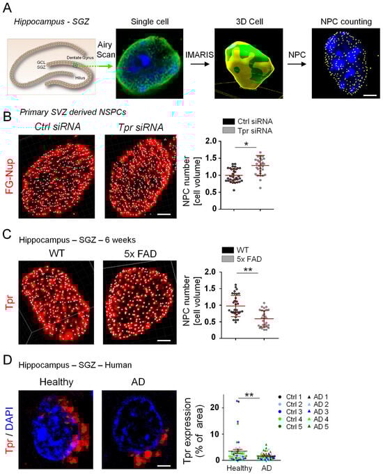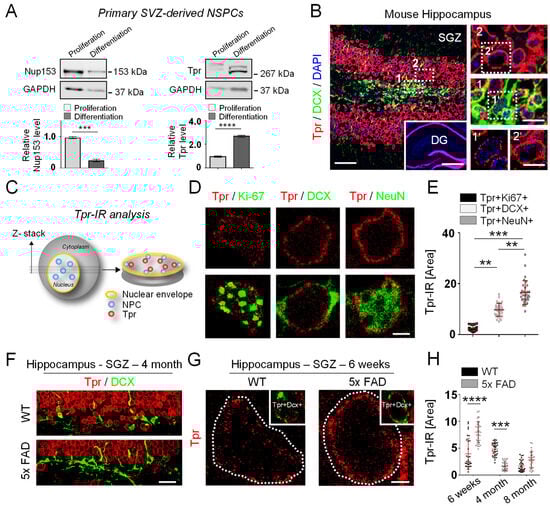 Malik, S.C.; Lin, J.-D.; Ziegler-Waldkirch, S.; Tholen, S.; Deshpande, S.S.; Schwabenland, M.; Schilling, O.; Vlachos, A.; Meyer-Luehmann, M.; Schachtrup, C. Tpr Misregulation in Hippocampal Neural Stem Cells in Mouse Models of Alzheimer’s Disease. Cells 2023, 12, 2757. https://doi.org/10.3390/cells12232757