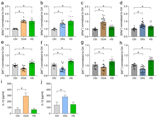 3.2. Loss of Potassium and Increase in IL-1β Production upon CG but Not HS Treatment