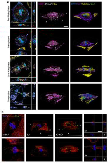 - Dunsch, A.K.; Hammond, D.; Lloyd, J.; Schermelleh, L.; Gruneberg, U.; Barr, F.A. Dynein Light Chain 1 and a Spindle-Associated Adaptor Promote Dynein Asymmetry and Spindle Orientation. J. Cell Biol. 2012, 198, 1039–1054. [Google Scholar] [CrossRef]