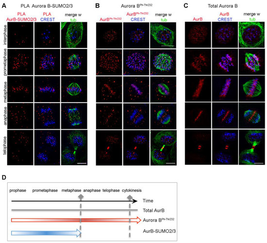 - Ban, R.; Nishida, T.; Urano, T. Mitotic kinase Aurora-B is regulated by SUMO-2/3 conjugation/deconjugation during mitosis. Genes Cells 2011, 16, 652–669. [Google Scholar] [CrossRef]