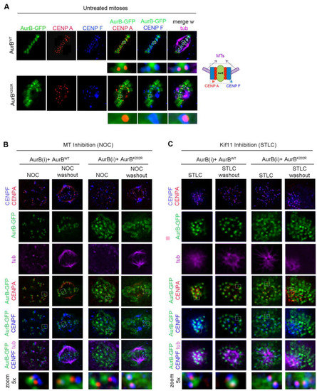 - Krenn, V.; Musacchio, A. The Aurora B Kinase in Chromosome Bi-Orientation and Spindle Checkpoint Signaling. Front. Oncol. 2015, 5, 225. [Google Scholar] [CrossRef] [PubMed]