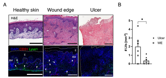 3.1. Lymphatic Vessels Are Largely Absent in Human Chronic Ulcers