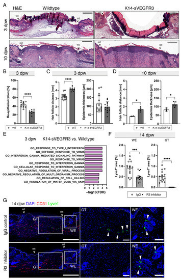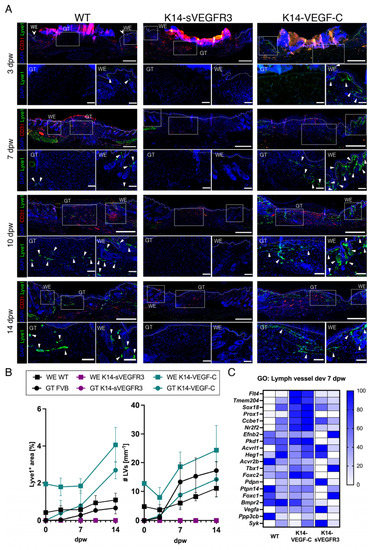 3.2. Lymphangiogenesis in Wounds of Wildtype, K14-VEGF-C, and K14-sVEGFR3 Mice