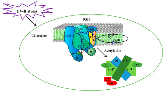 Pattern diagram of photosystem II protein acetylation in Rhododendron chrysanthum under UV-B stress.