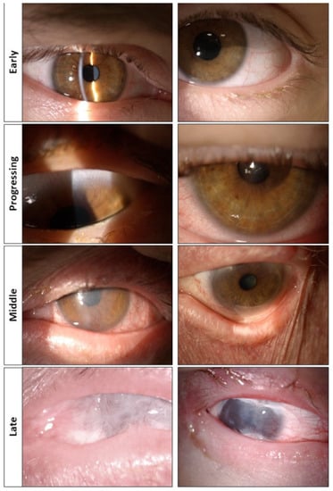 - Rama, P.; Matuska, S.; Paganoni, G.; Spinelli, A.; De Luca, M.; Pellegrini, G. Limbal stem-cell therapy and long-term corneal regeneration. N. Engl. J. Med. 2010, 363, 147–155. [Google Scholar] [CrossRef]