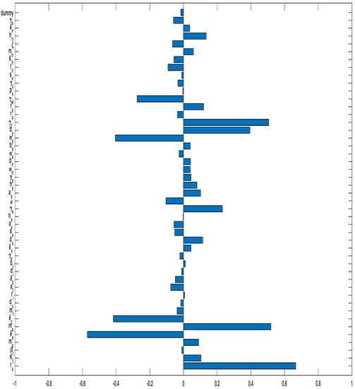 In this subsection, we investigate the model results when the immune checkpoint inhibitor is not applied. Figure 5 shows the PRCC analysis result in the scenario where each parameter in the model is considered. For this case, the parameters with the strong correlation to the susceptible tumor size are tumor growth rate , with , tumor killing rate by immune cells , with , half-saturation constant of the tumor killing rate by effector cells , with , decay rate of tumor-suppressing cytokines , with , and tumor killing rate by cytokines , with . See Figure 5.