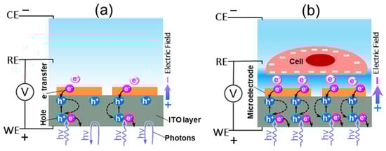 - Wu, F.; Zhou, B.; Wang, J.; Zhong, M.; Das, A.; Watkinson, M.; Hing, K.; Zhang, D.W.; Krause, S. Photoelectrochemical Imaging System for the Mapping of Cell Surface Charges. Anal. Chem. 2019, 91, 5896–5903. [Google Scholar] [CrossRef]