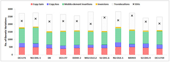 - Li, H.; Handsaker, B.; Wysoker, A.; Fennell, T.; Ruan, J.; Homer, N.; Marth, G.; Abecasis, G.; Durbin, R. 1000 Genome Project Data Processing Subgroup The Sequence Alignment/Map Format and SAMtools. Bioinformatics 2009, 25, 2078–2079. [Google Scholar] [CrossRef]