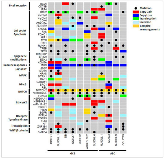 - Testoni, M.; Zucca, E.; Young, K.H.; Bertoni, F. Genetic Lesions in Diffuse Large B-Cell Lymphomas. Ann. Oncol. 2015, 26, 1069–1080. [Google Scholar] [CrossRef] [PubMed]