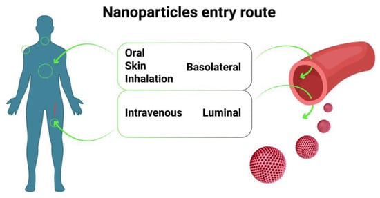 Main routes of NP entry into organisms. Most NPs can enter the body through natural barriers, such as the skin, mucous membranes, or vessel walls. At the same time, to study the biodistribution of NPs, it is important to understand how nanoparticles pass through these barriers. For example, NPs that enter the body through the skin can enter vessels by passing through the basolateral membrane and then through the endothelial layer. If the NPs initially enter the vessel, they can leave it via the luminal pathway, first passing the endothelial layer and then the basolateral membrane in the opposite direction.